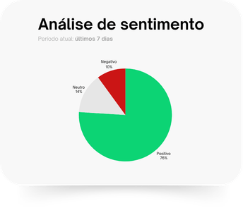 Cada menção é classificada automaticamente como positiva, negativa ou neutra.